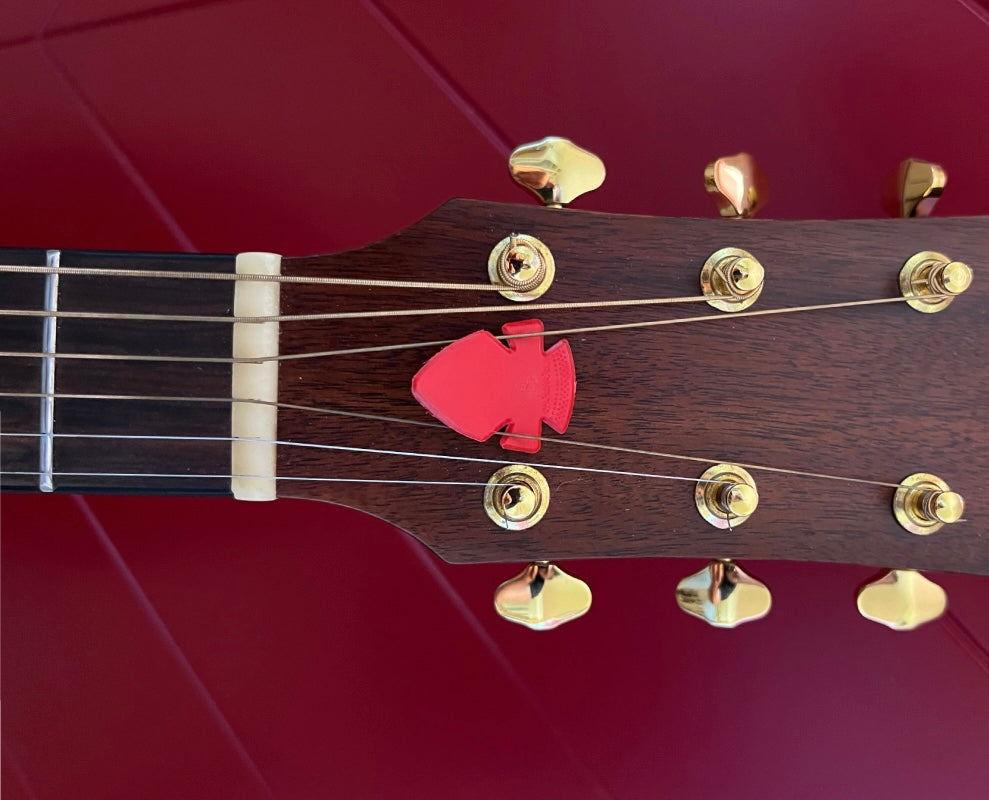 Le due ali (o braccia del plettro) a forma di croce permettono a Crosspick® di autofissarsi sulle corde della paletta, particolarmente nelle chitarre con meccaniche 3+3. Questo semplice ma efficace dettaglio elimina il problema dei plettri persi: niente più plettri dimenticati in lavatrice, nelle tasche dei jeans o dispersi ovunque.